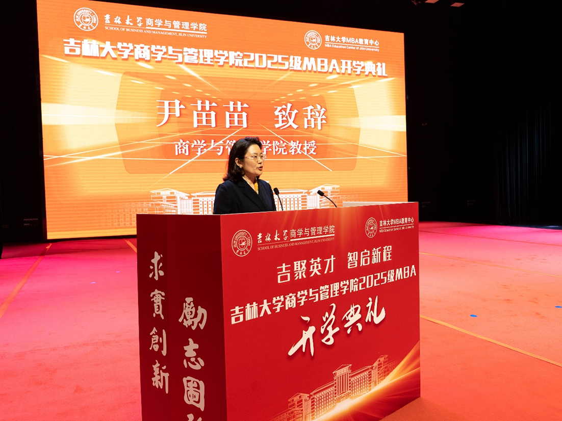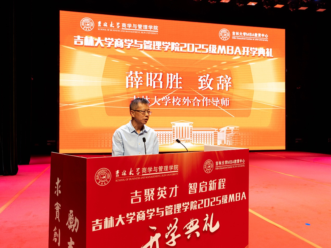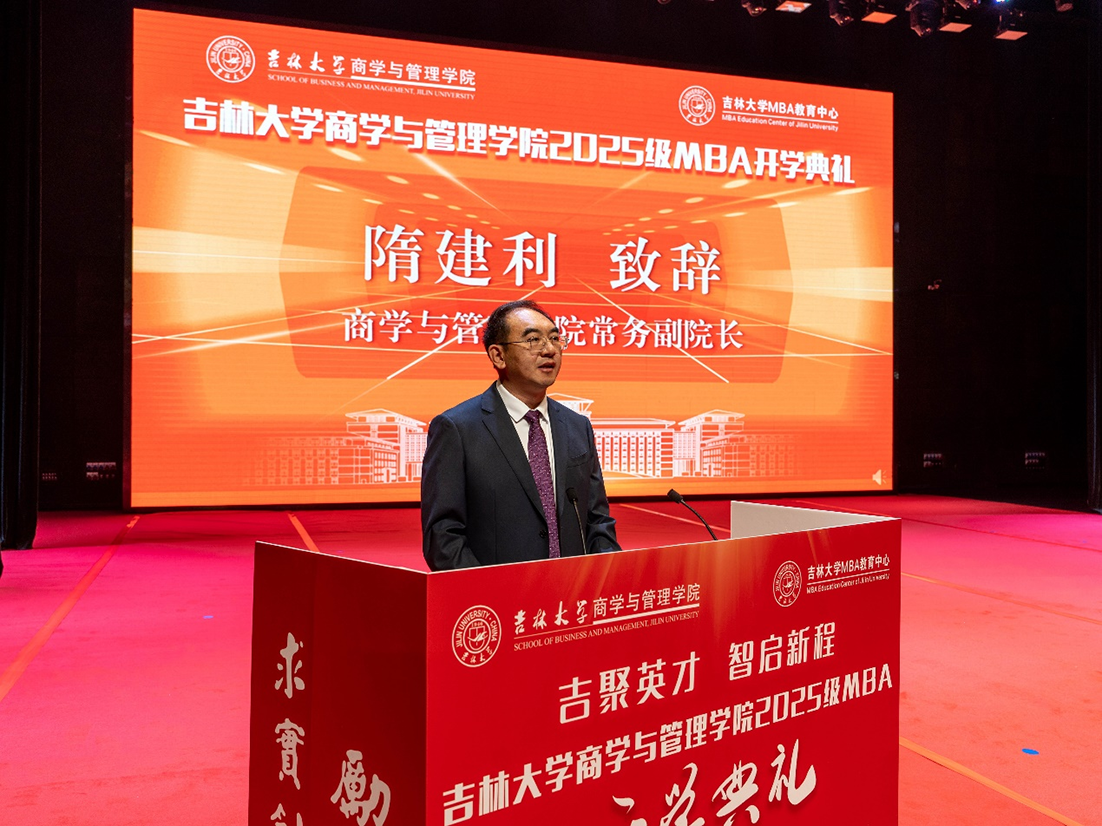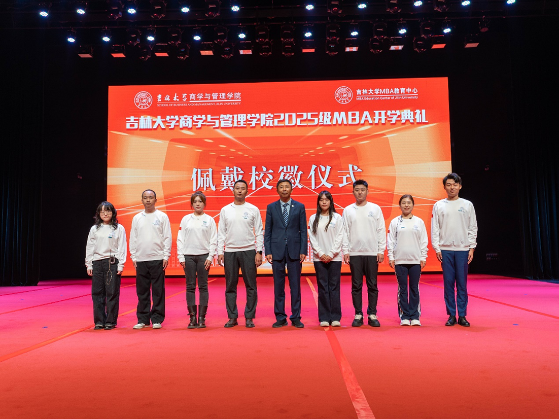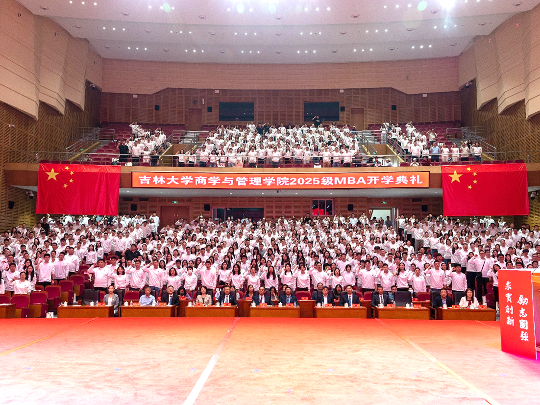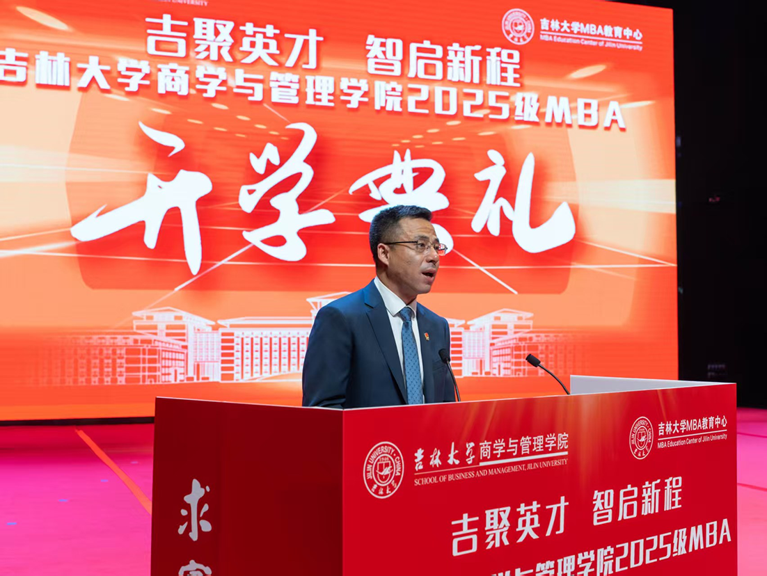祥瑞交融,青春向北启新程;清晖共耀,吉人天下谱新篇。10月1日下午,举国欢庆之际,吉林大学商学与管理学院2025级MBA开学典礼在鼎新大讲堂隆重举行。院党委书记赵军、常务副院长隋建利、数量经济研究中心主任孙巍、院党委副书记兼副院长马腾、院党委副书记李帅、副院长马捷、副院长王金明、副院长张小宇及教师代表以及工商管理、项目管理、图书情报专业学位硕士研究生817名同学参加典礼。典礼由MBA教育中心主任张公一主持。